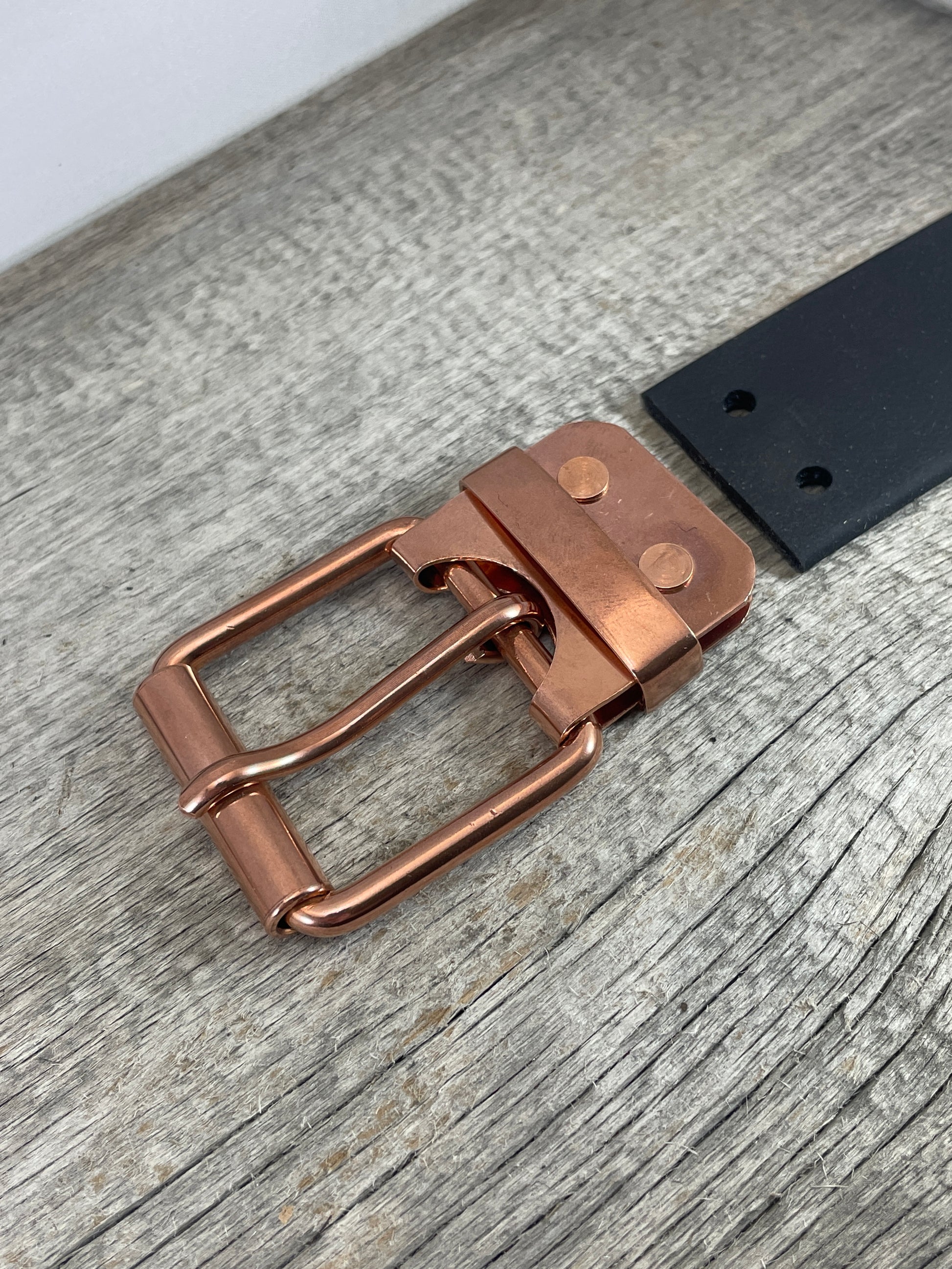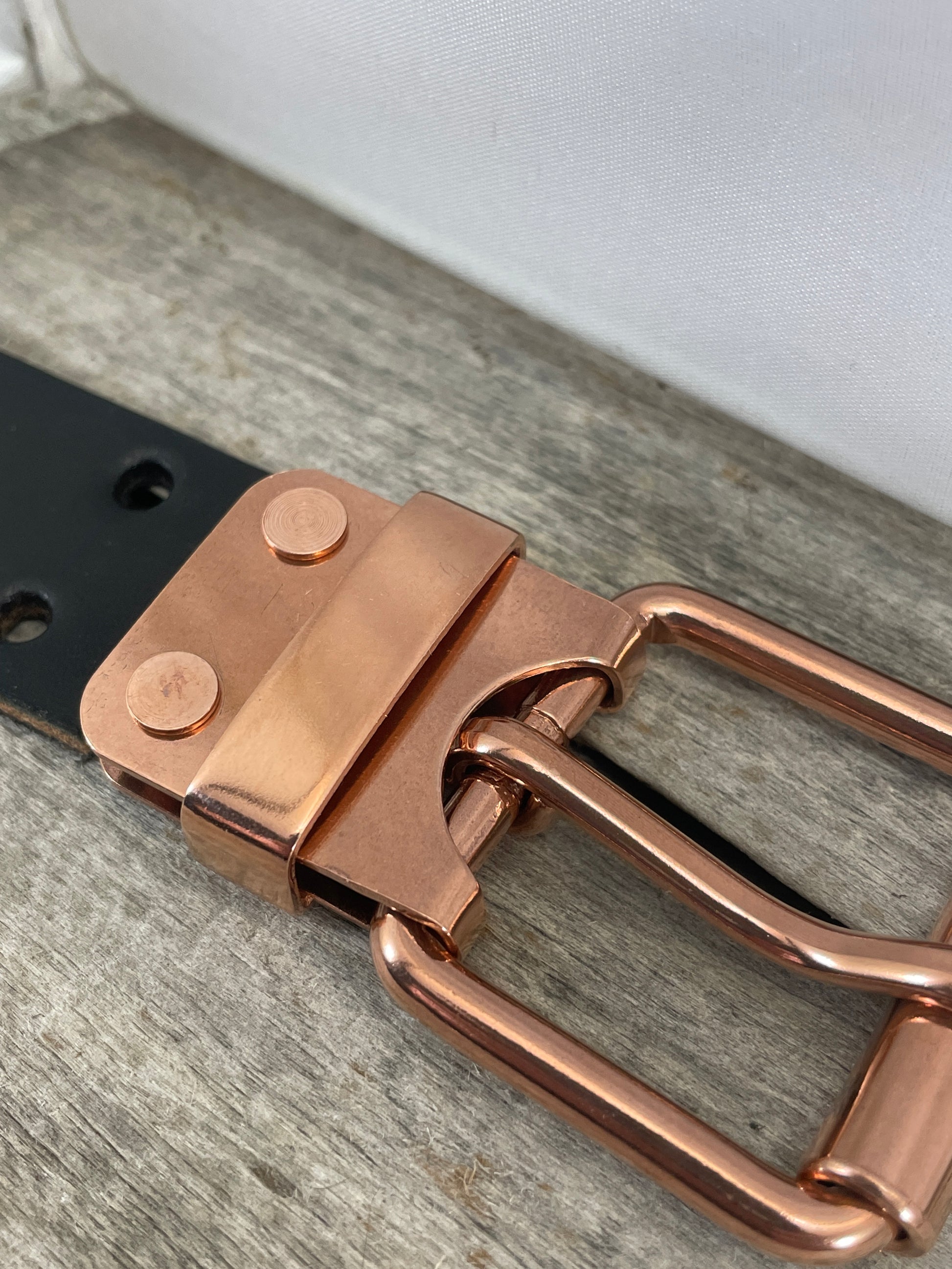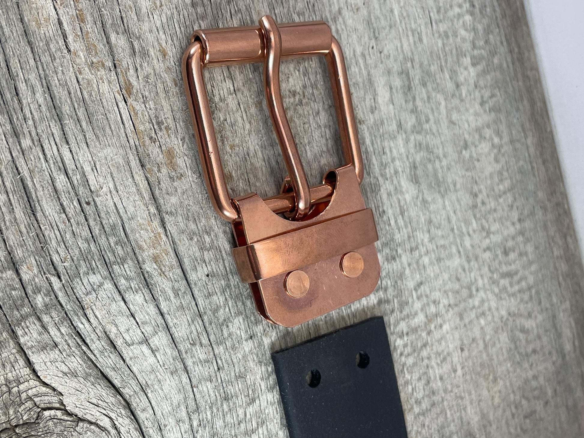 (CB-01)1.5 - Our 1.5" Extra Strong Solid Copper Belt-Plate Buckle with a Copper Belt Plate and Copper Keeper on Custom 1.5" Wide Leather Strap