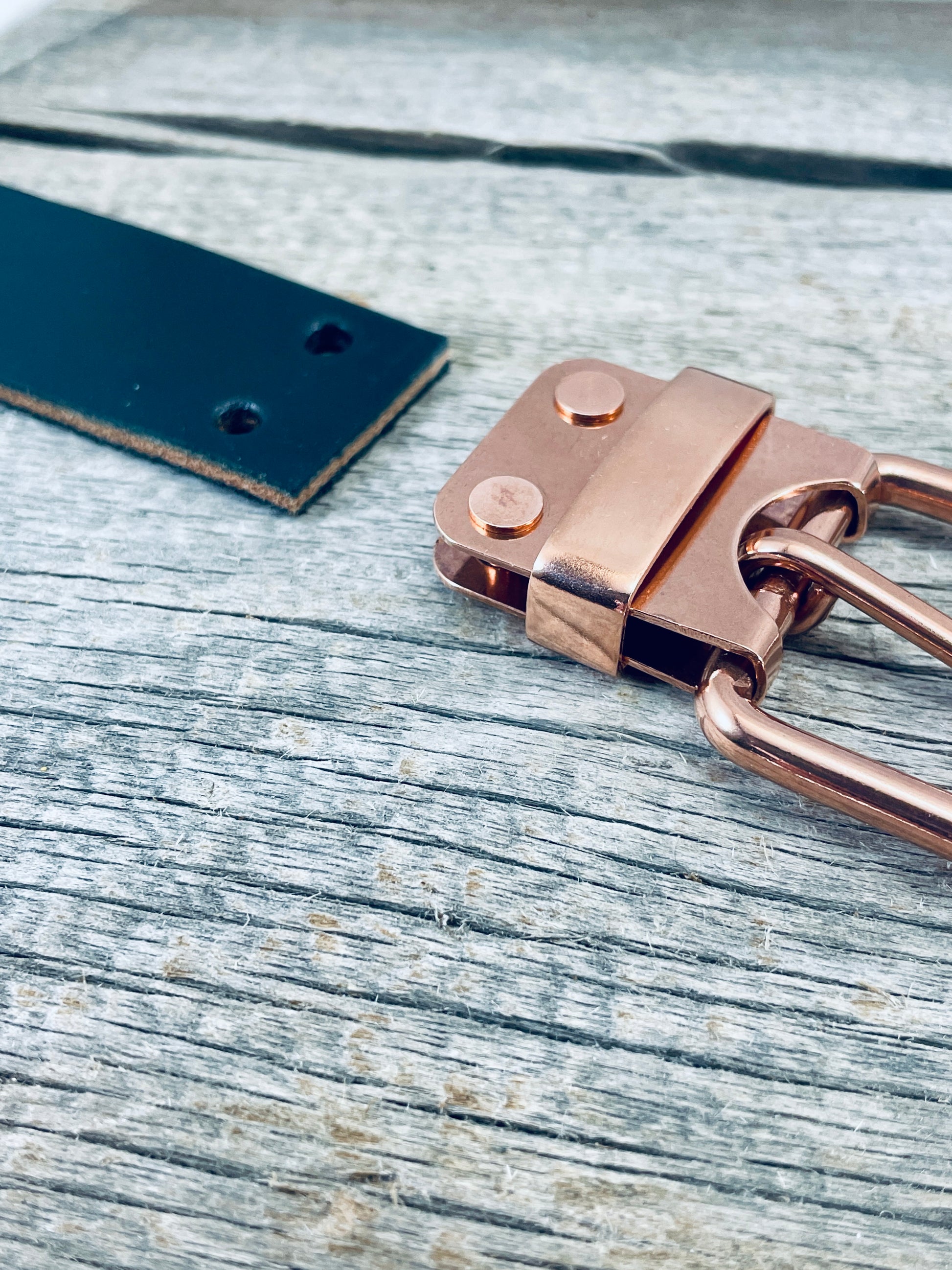 Each buckle is crafted entirely in-house from sustainably sourced metals: pure copper that is 100% pure. Every belt-plate buckle is made to order, where a single team member oversees every step—assuring precision, consistency, and relentless improvement of both product and process.